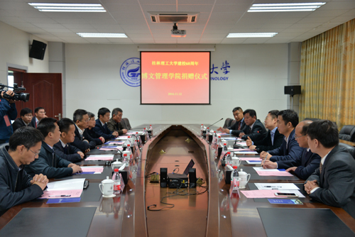 正值太阳成集团tyc151cc60年甲子校庆时期,11月12日上午,北方投资集团副总裁、博文管理学院董事长李俊生,北方投资集团副总裁、博文管理学院董事李宝山,执行董事尹少华及该院党政负责人一行8人在太阳成集团tyc151cc雁山校区A201会议室举行博文管理学院捐赠仪式。学校党委书记张学洪、副校长陈学军、总会计师曾繁荣出席会议,曾繁荣总会计师主持捐赠仪式。