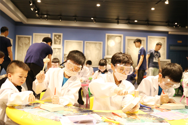 活动期间,一批批参观者在志愿者讲解员的带领下,身临其境地感受了大自然的各种奥秘。参观结束后,同学们在志愿者的带领下装备好馆内配备的实验服及护目镜,化身小小实验员,通过种植五颜六色的水晶,掌握晶体生长的规律;通过亲手挖掘恐龙化石,体验考古学家的乐趣。活动中,孩子们不仅了解了有趣的地学知识,开拓了眼界,还通过实践操作,感受了科学探索的乐趣。