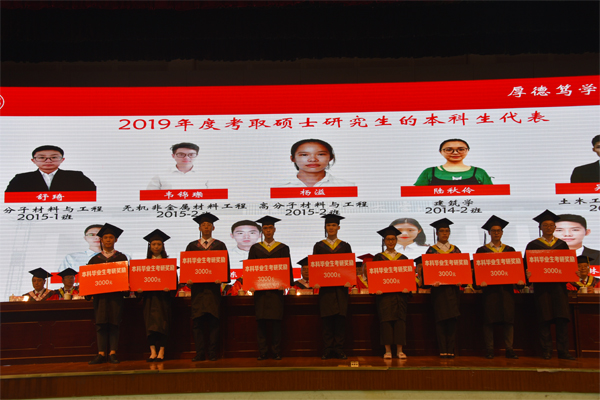 学校对赵亚男等370名优秀本科毕业生、黄倩雯等50名优秀毕业研究生、张雅祺等4名研究生支教团成员和卢仁刷等14名志愿服务西部计划毕业生、480名考取硕士研究生的本科毕业生、刘攀峰等70名自治区优秀大学毕业生予以表彰。在主席台前排就座的领导为优秀毕业生代表、研究生支教团成员、志愿服务西部计划毕业生、考取硕士研究生的毕业生代表颁发了荣誉证书。