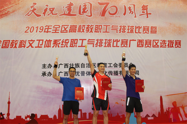 6月30日至7月2日,由自治区教育工会主办的2019年全区高校教职工气排球比赛暨全国教科文卫体系统职工气排球比赛广西赛区选拔赛在广西体育中心举行。学校党委副书记、副校长吴志强,副校长王敦球带领学校三支队伍共28人参加比赛。