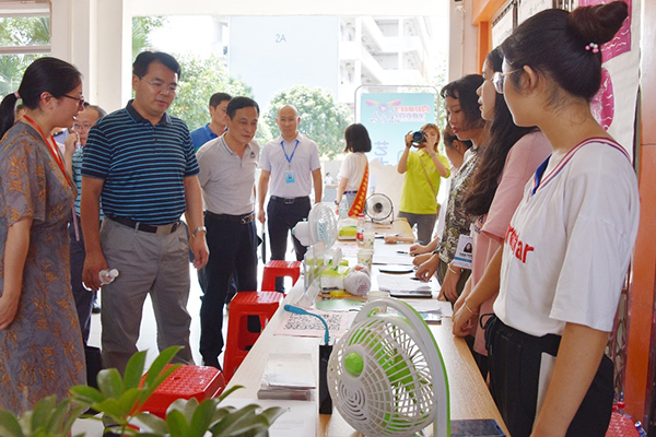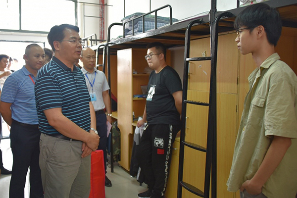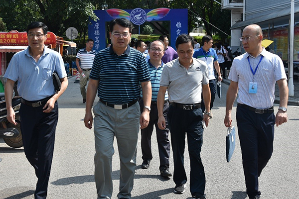 学校党委书记李国忠(左二)、副书记王赣华(左一),副厅级调研员张劲松(右二)检查指导迎新工作