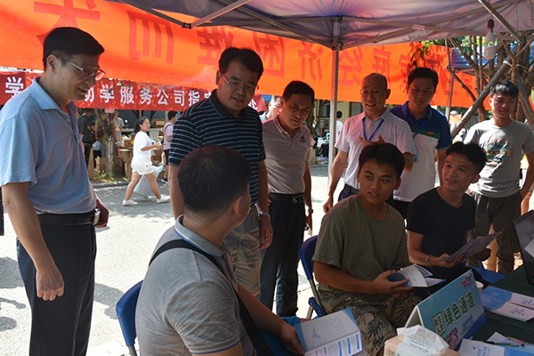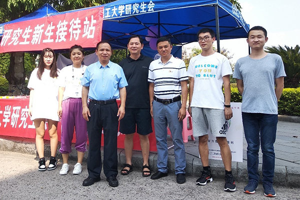 学校副校长周国清(左三)在屏风校区检查指导研究生迎新工作