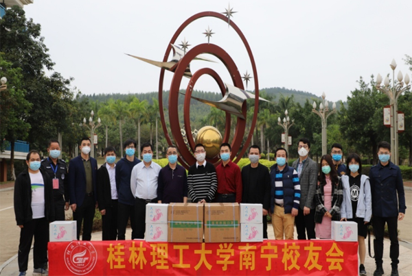 此外,日前南宁校友会在通信00级校友、南宁校友会会长张桂林的带领下,分别将3000个一次性口罩于送抵母校本部以及2500个一次性口罩和30件六以水由校友代表一行人驱车将物资亲自送到南宁空港校区。