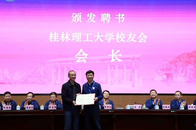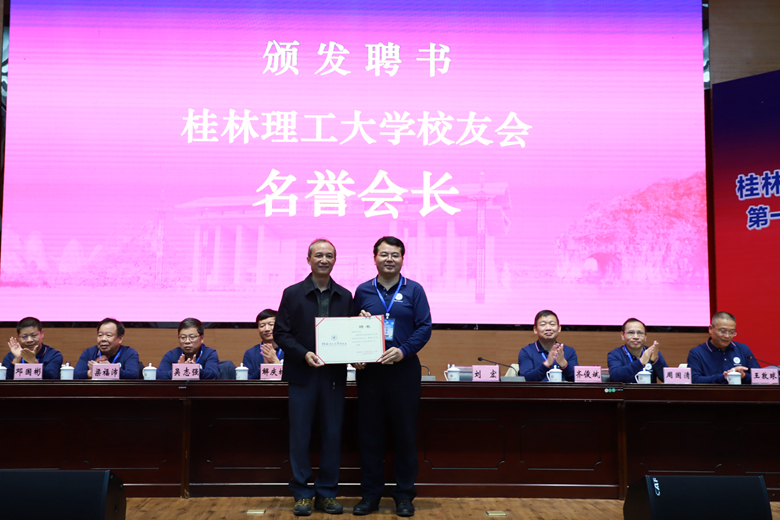刘宏局长为李国忠书记颁发校友会名誉会长聘书