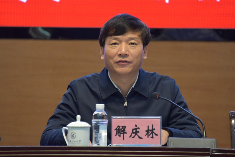 解庆林客观总结了学校2020年工作取得的成绩,他表示,学校统筹抓好疫情防控和各项事业发展,疫情防控有力有效、党的建设走深走实、事业发展有声有色、办学保障提质聚力,在极不平凡的2020年实现了高质量新发展。他指出,这些来之不易的成绩凝聚着全校师生众志成城、攻坚克难的辛勤付出,他代表学校党委行政,向与会人员以及全体师生员工致以诚挚的感谢!