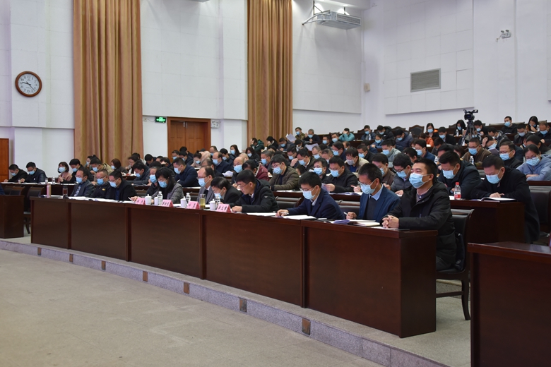 受在外学习的学校党委书记李国忠委托,学校校长解庆林在会上作重要讲话,对学校2021年党政工作进行了部署。