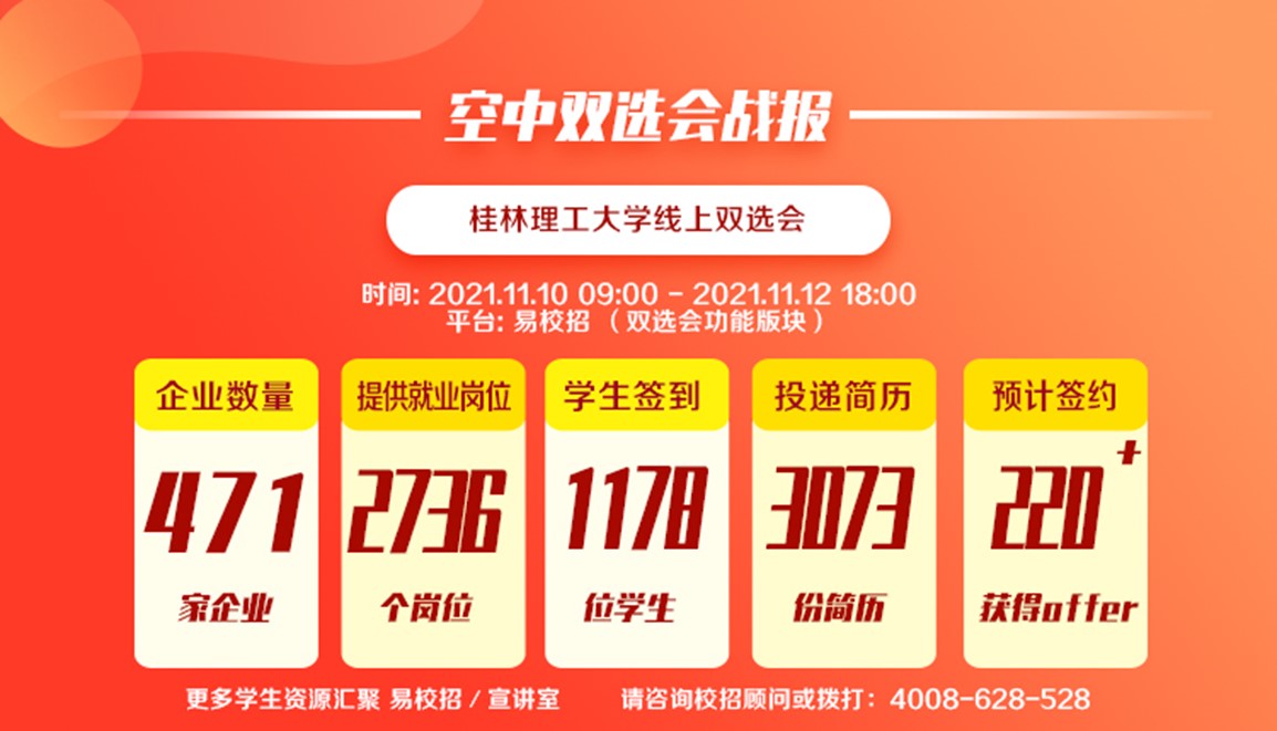 本次线上双选会共有471家用人单位应邀参会,为毕业生提供了涵盖建筑和房地产、计算机软件、机械制造、互联网、教育、餐饮及金融保险等行业领域的2700余个就业岗位,招聘人员需求达4.1万余人,共吸引了1178名毕业生报名参会,投递简历 3073份。毕业生与企业通过线上平台进行云面试交流共计900余人次,多人达成初步签约意向。