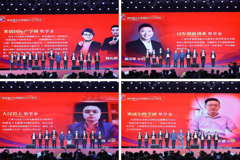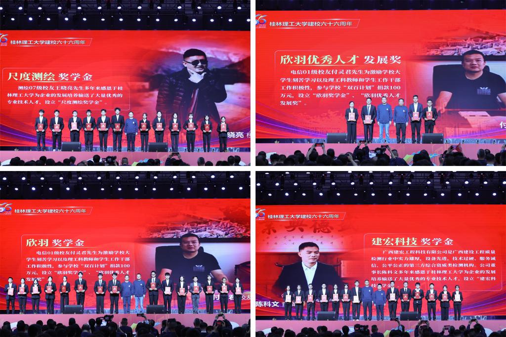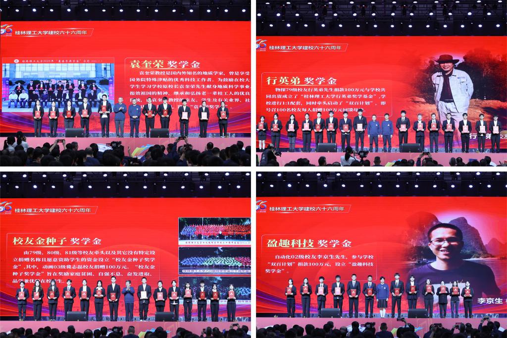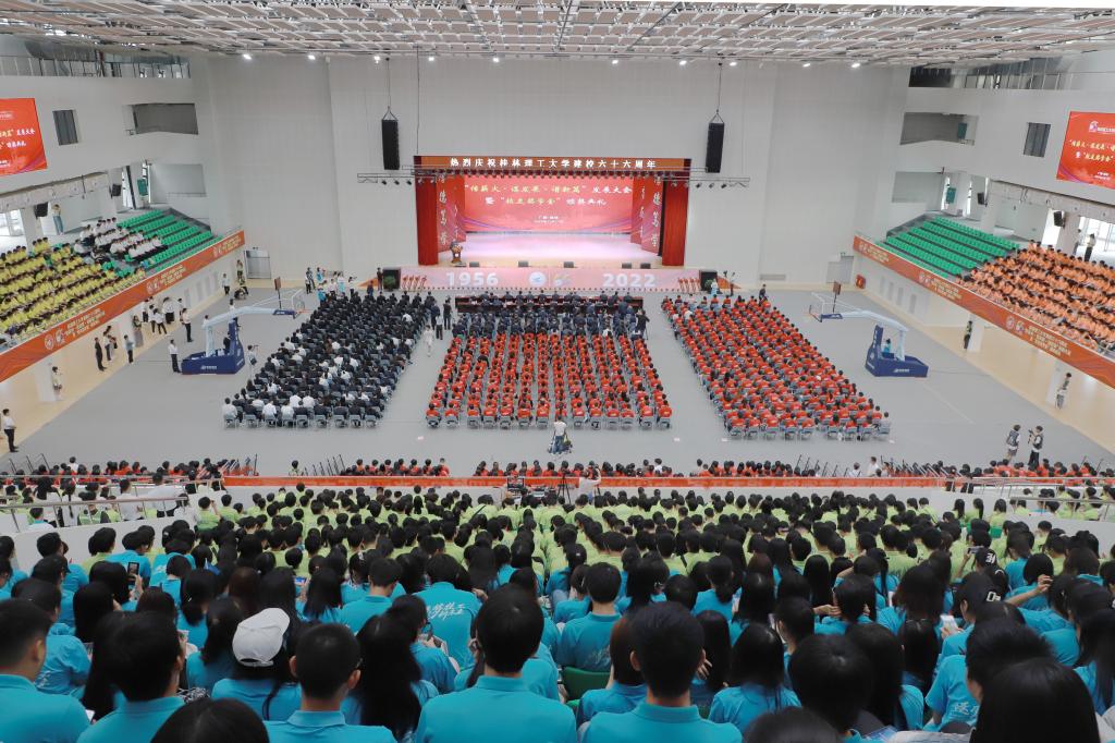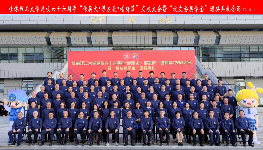 六十六载岁月峥嵘,弦歌不辍;六十六载砥砺奋进,春华秋实。在全国上下深入学习宣传贯彻党的二十大精神之际,太阳成集团tyc151cc迎来了建校66周年的喜庆日子。11月11日下午,学校在雁山校区新体育馆举行建校六十六周年“传薪火·谋发展·谱新篇”发展大会暨“校友奖学金”颁奖典礼,总结回顾母校66年的奋进之路,展望桂工的美好未来,并对获奖师生予以表彰。