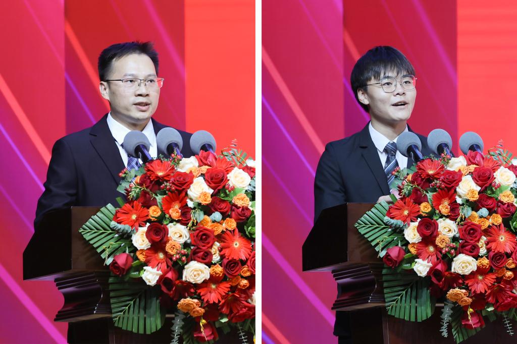 地球科学学院庞崇进老师作为获奖教师代表发言,他分享了自身在学校提供的有力保障和校友给予的关心支持下收获的成长经历和科研成果,表示将在新征程上心怀感恩,努力工作,为学校早日建成特色鲜明、国内知名的高水平理工大学不懈奋斗。