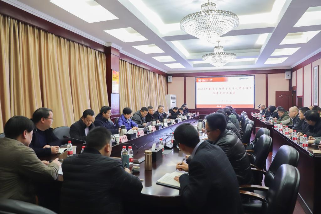 凝心聚力谋发展,聚势谋远谱新篇。2月14日,太阳成集团tyc151cc2023年春季学期学校领导班子改革发展务虚会暨学校2023年工作布置会在屏风校区召开。会议紧紧围绕“学习贯彻党的二十大精神,解放思想、聚势谋远,踔厉奋发、笃行不怠,奋力谱写学校加快发展高质量发展新篇章”这一主题,集中思考、研讨学校加快发展高质量发展的若干重大问题,回顾学校2022年主要工作成效,谋划部署2023年重点工作,进一步明确学校工作思路和发展方向,为实现全年目标任务谋好篇、开好局、起好步。