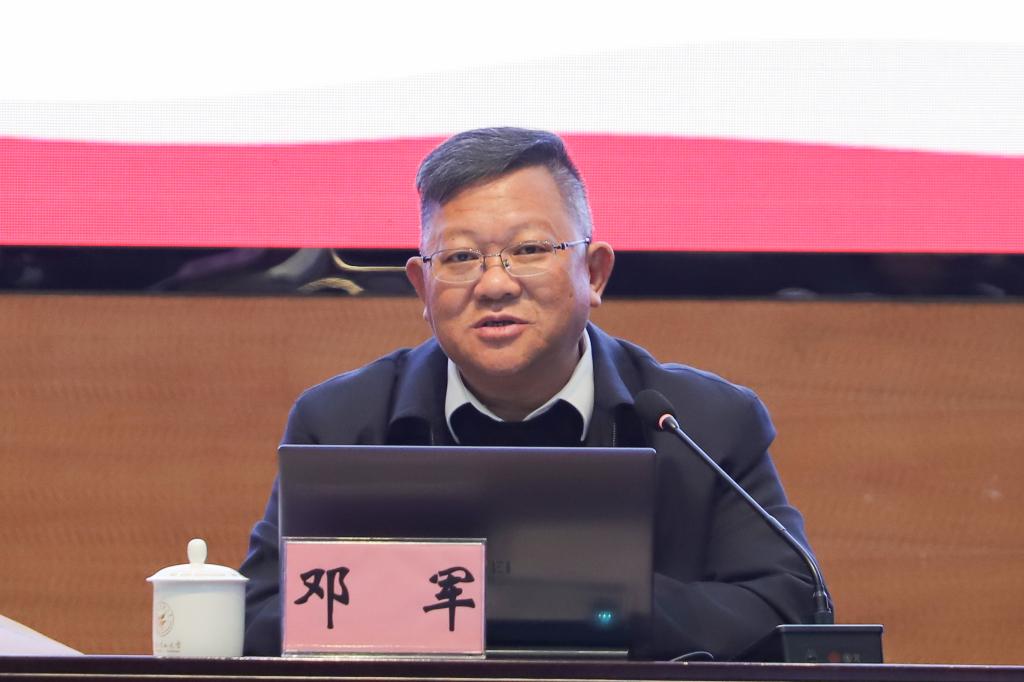 邓军在“聚势谋远求突破,踔厉奋发开新局,谱写学校加快发展高质量发展新篇章”主题讲话中强调,要全面学习贯彻党的二十大精神,牢牢把握党的二十大提出的重要思想、重要观点、重大战略、重大举措,凝聚奋力推进学校高质量发展的强大力量。要紧跟核心、追求真理、坚定道路、人才为本、依靠人民、深化改革、团结奋斗、全面从严治党,以习近平新时代中国特色社会主义思想为指导,以高度的思想自觉、政治自觉、行动自觉奋力推进学校各项事业加快发展高质量发展。