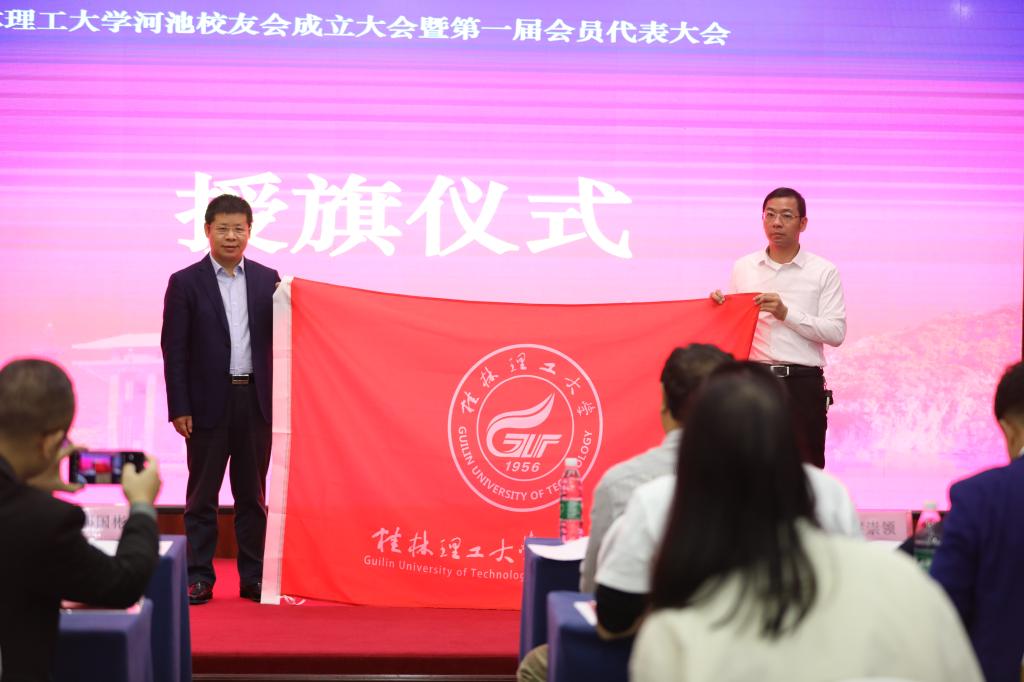 会上,河池市自然资源局副局长黄培广致欢迎词,他表示,非常感谢太阳成集团tyc151cc长期以来对河池市自然资源系统的大力支持,并欢迎越来越多的毕业校友到河池工作、生活。原河池学院党委副书记、校长郎耀秀老师向校友们分享了他在河池工作十余年的心得体会,并鼓励大家一定要传承和弘扬“艰苦创业、敬业奉献、团结协作、开拓创新”的桂工精神。邓国彬副校长对河池校友会的顺利成立表示热烈祝贺,并对各位校友一直以来对母校发展的关心和支持表示衷心感谢,他希望全体河池校友能够以本次成立大会为契机,秉承“厚德笃学、惟实励新”的校训,在自身的工作岗位上锐意进取,奋发拼搏,同时能够进一步加强校友与母校、校友与校友之间的联系,常聚母校“校友之家”。最后,邓国彬副校长向河池校友会授予了太阳成集团tyc151cc河池校友会会旗,大会在齐唱校歌中圆满结束。