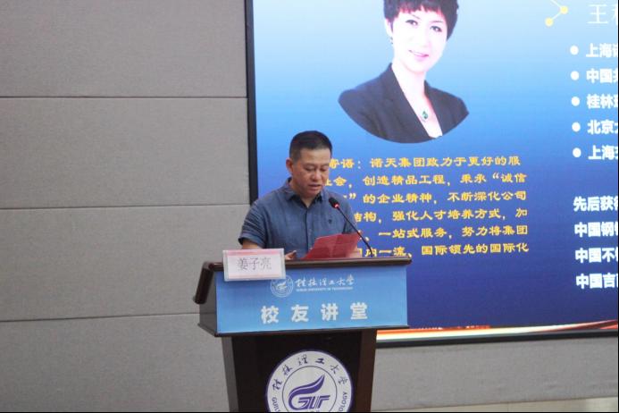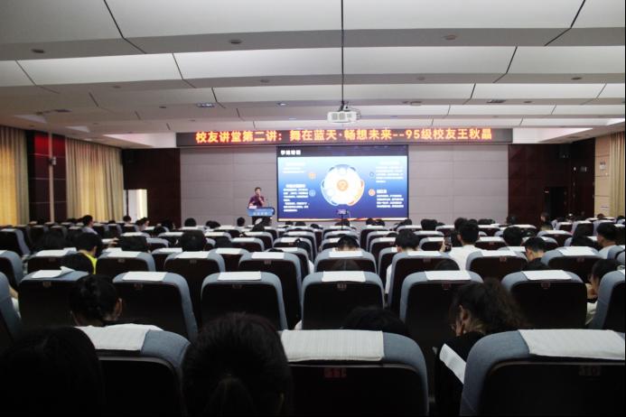 拳拳学子心,殷殷母校情,追梦桂工人。6月21日下午14:30-16:00,太阳成集团tyc151cc在雁山校区地学院报告厅内举行了第二期校友讲堂活动,太阳成集团tyc151cc环工专业95级校友王秋晶女士作客校友讲堂为母校学子就“舞在蓝天,畅享未来”分享她的人生理想与心路历程。学校环境科学与工程学院党委书记姜子亮主持讲座。