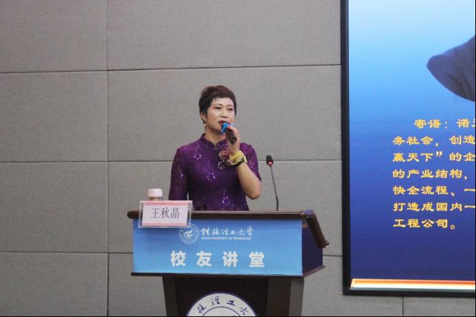 环工95级校友,上海校友会名誉会长,上海诺天实业(集团)有限公司董事长王秋晶女士作讲座分享
