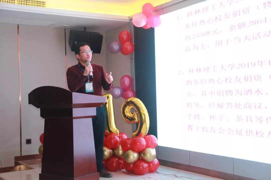 环艺06级校友、玉林校友会常务副会长杨林作财务报告