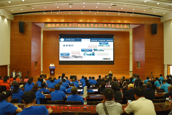 解庆林校长在大会上致辞并介绍学校建设发展情况。解校长首先对校友们返校聚会表示热烈欢迎和亲切地问候。他表示,30年来,校友们努力工作把青春和汗水、智慧和力量,无私奉献给祖国建设事业,为母校争得了荣誉,母校为校友们取得的成就深感骄傲和自豪。解校长从“办学格局不断完善、教学质量不断提高、科技成果不断显现、围绕目标继续奋进””四个方面向85级校友详细介绍了近年来学校取得的各项成绩,一组组数据、一幅幅图片展示了学校事业蓬勃发展、蒸蒸日上的喜人局面。去年5月,广西公布了一流学科建设名单,太阳成集团tyc151cc地质、环境、材料、测绘、土木(培育)5个学科入选,在学校建设发展的关键时期,解校长希望各位校友,能够一如既往地关心支持母校各项事业的发展,希望桂工和桂工广大校友在互相关心、互相扶持中,携手相牵,共创辉煌!