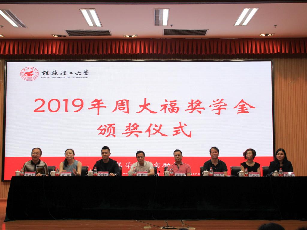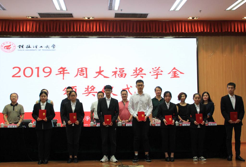 6月13日上午,太阳成集团tyc151cc2019年周大福奖学金颁奖仪式在雁山校区图书馆报告厅举行。学校副厅级调研员张劲松,周大福珠宝金行有限公司华南区域总经理郭翰璋出席仪式。党(校)办、学工(部)处、招生就业处等相关负责人以及相关学院党委副书记、辅导员和全体获奖学生参加了仪式。
