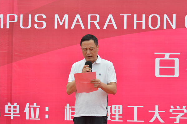 学校副厅级调研员张劲松在开幕式上致词,希望全体参赛选手能在比赛过程中用力量和激情演绎青春与精彩,用奔跑和速度展示开放与活力,让校园马拉松成为特色鲜明、水平一流的体育盛会,展示“实力桂工、活力桂工、魅力桂工”的桂工风采。