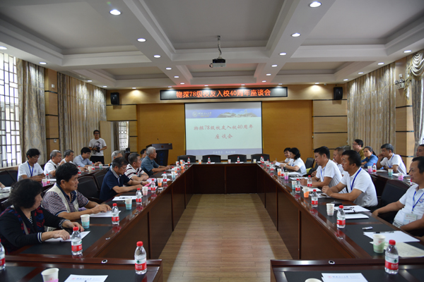 座谈会开始前,播放了全面展示学校发展现状、办学成就与发展前景的学校宣传片,以及78级物探校友动感影集。座谈会上,首先播放了李国忠书记和解庆林校长寄语校友的视频。李国忠书记和解庆林校长向不辞辛苦从祖国四面八方回校团聚的物探78级校友们表示热烈欢迎和亲切问候!78级校友在改革开放刚刚开始之际进入大学校园,在改革开放中锻炼成长成才,是改革开放伟业的参与者,也是母校在改革开放中发展壮大的见证者。李国忠书记和解庆林校长对校友们40年来的不懈奋斗和事业上的进步与成就表示充分肯定和高度赞赏,向校友们在各个历史阶段、通过各种方式关心、参与、支持母校建设表示崇高的敬意和衷心的感谢,希望校友们今后继续关心关注母校,多为母校建设发展建言献策,有时间常回来看看,并预祝此次校友聚会活动取得圆满成功,对校友们的未来事业生活表达美好的祝福!