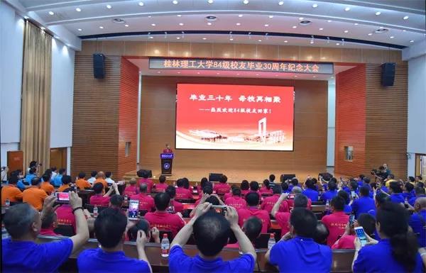 李国忠书记在纪念大会上致辞,对校友们返校聚会表示热烈欢迎和亲切问候。李书记表示,30年来,校友们努力工作,把青春和汗水、智慧和力量,无私奉献给祖国建设事业,为母校争得了荣誉,母校为校友们取得的进步和成就深感骄傲和自豪。李书记用“命运共同体”形象地说明了母校和校友的关系。他说,母校的发展离不开校友的关心支持,校友的进步也不能缺少母校这个坚强的后盾,当前,学校正处于加快发展的关键时期,真诚希望各位校友,能够一如既往地关心和支持母校各项事业的发展,和广大师生员工一道,为把母校早日建成特色鲜明高水平理工大学贡献力量。他希望桂工和桂工广大校友在互相关心、互相扶持中,携手并进、共创辉煌!
