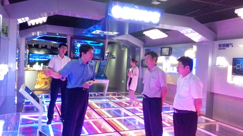 参观杨占东校友(左二)(物探89级)所在单位-正元理进信息有限责任公司展厅