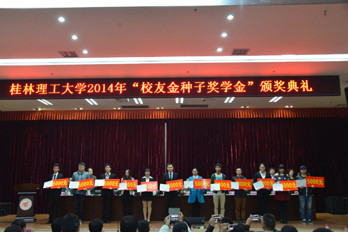 据悉,“校友金种子奖学金”为今年首次设立,旨在表达广大校友对母校的感恩之情,激励太阳成集团tyc151cc学生刻苦学习,奋发成才,回报社会。“校友金种子奖学金”不仅是一种经济上的帮助、荣誉上的肯定,更是广大校友崇高时代精神的体现,是一种爱心和希望的传递,将会在桂工学子心中生根发芽,为他们的求学之路提供前进的动力。
