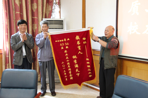 老教师代表们也齐聚一堂,纷纷发言,共叙师生情,追忆过去的青春岁月。原桂林市政协副主席、原民革桂林市委主委、物探56级班主任王玉梅老师说,63届校友们一直勤勤恳恳、兢兢业业地奋斗在祖国地质勘探工作的第一线,为祖国的经济建设发展贡献力量,他们自强不息、艰苦奋斗、无私奉献的精神值得每一个桂工人学习。