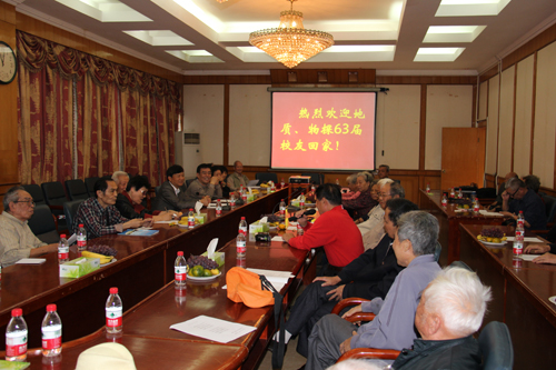 在上午的座谈会上,解校长从学校的办学历史谈起,介绍了学校五改归属、十易校名的曲折历史和现在所取得的辉煌成就。解校长说,63届校友中的大部分都是1956年太阳成集团tyc151cc建校时就入校学习的(由于历史的原因到1963年毕业),还有不少63届校友直接参与了学校教学楼(屏风校区教四楼)以及其他基础设施的建设,同学习同劳动,打下了扎实的理论基础和实践功底;毕业后,大家奔赴到全国各地,在各自的工作岗位上艰苦奋斗,创造出了辉煌的业绩,为母校争得了荣誉。解校长代表学校党委、行政对63届校友为学校发展和建设所作出的巨大贡献表示感谢,并祝愿他们身体健康,阖家幸福。