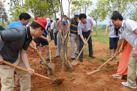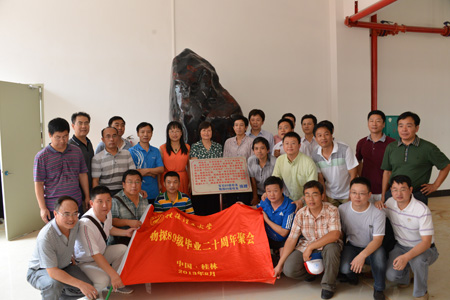 上午,89级宝石、物探专业校友前往雁山校区栽种“友谊树”表达校友们对母校深深的感恩和祝福之情。同时,89级宝石、物探专业的校友向学校赠送了鸡血石,陈贵英副校长代表学校接受了捐赠。