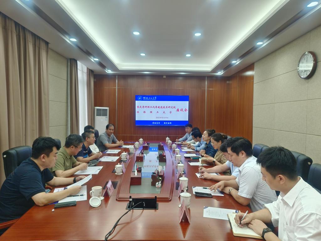 10月19日下午,重庆清研理工汽车制造技术研究院一行在桂林高新区经发局局长董冰陪同下来校考察交流。校友与国内合作处、科研院、材料科学与工程学院、机械与控制工程学院、理学院、信息科学与工程学院等相关单位和学院负责人参加座谈会。