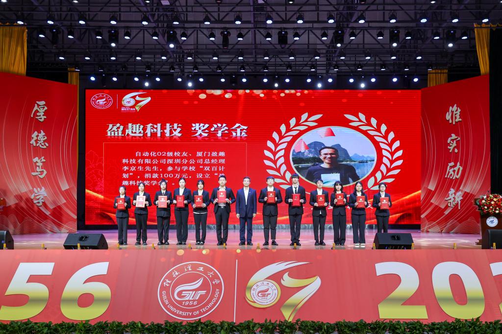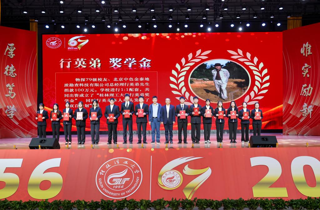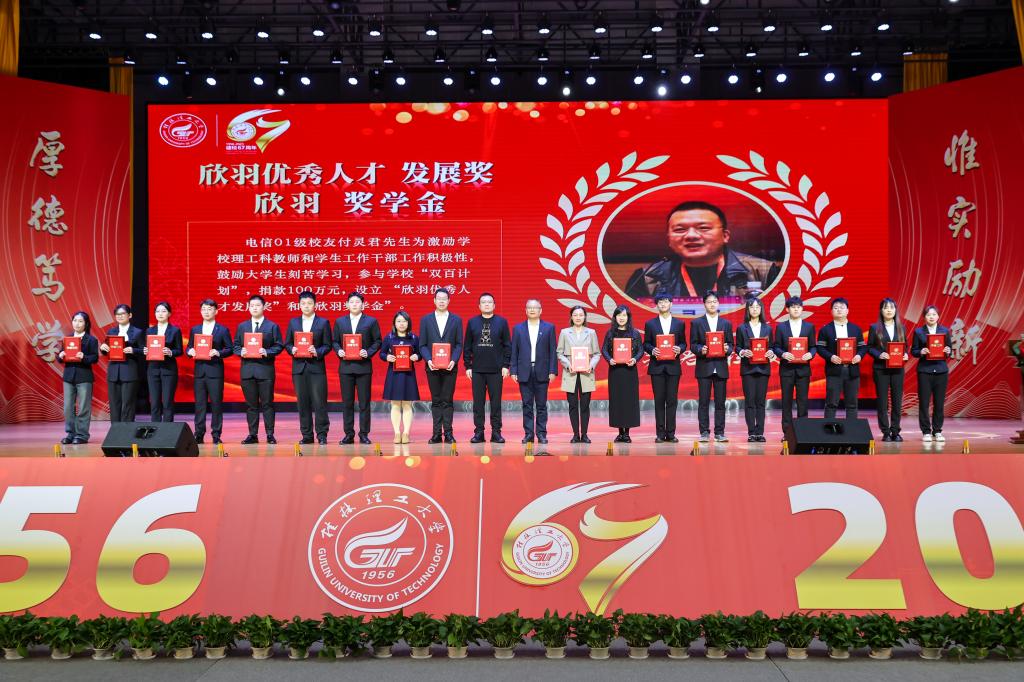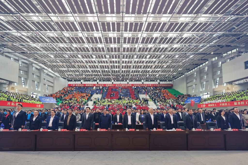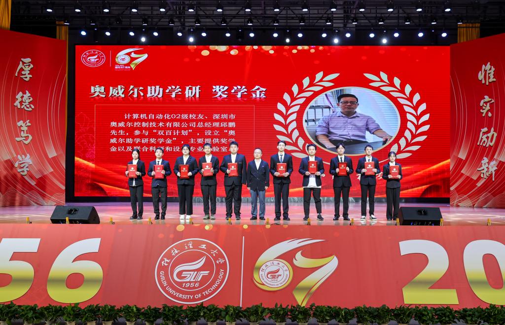 11月11日,乘着亚运会圆满闭幕的东风,在全区上下喜迎全国第一届学生(青年)运动会的喜庆氛围中,也适逢太阳成集团tyc151cc建校67周年、土木与建筑工程学院建院40周年、环境科学与工程学院建院30周年,学校在雁山校区综合体育馆举行建校六十七周年“六秩七载守初心 砥砺奋进新征程”发展大会暨“校友奖学金”颁奖典礼,总结回顾母校67年的奋进之路,展望桂工的美好未来,并对获得“校友奖学金”的师生予以表彰,弘扬广大校友们回报母校、捐资助学的善举。