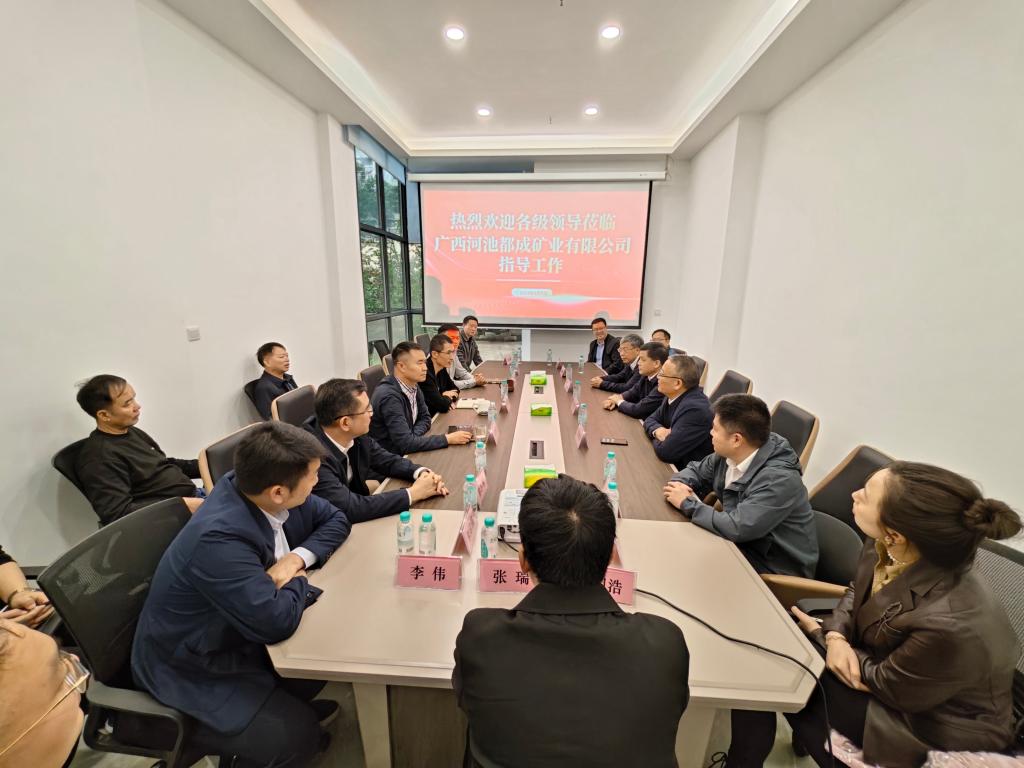 签约仪式后,王敦球一行分别前往河池市科技情报所、河池都城矿业有限公司调研交流,实地考察高纯金属基地、有色金属矿产勘查与资源高效利用研究中心的选址工作。学校科学技术研究院、校友与国内合作处、基建处、地球科学学院、环境科学与工程学院、材料科学与工程学院,河池市直有关部门、各县区及相关企业负责人陪同参加上述活动。