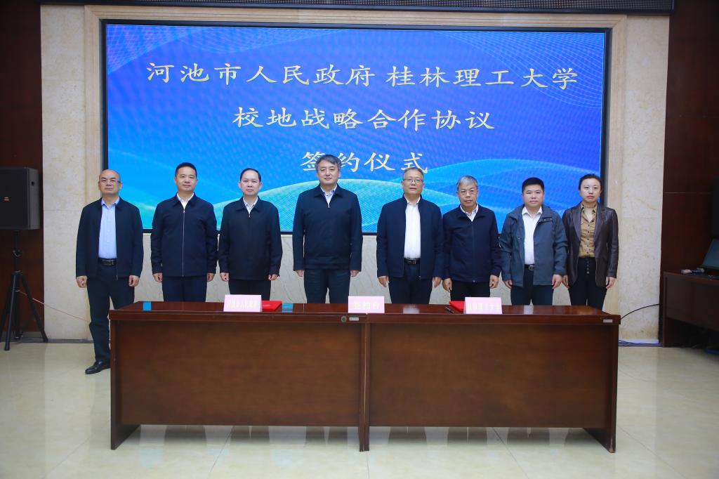 王敦球代表学校向长期以来关心支持学校发展的河池市委、市政府表示感谢。他介绍了学校的办学定位,办学特色,尤其是依托学科、科研和人才等方面的优势,深化政产学研深度融合方面的有关情况。他指出,学校将围绕河池市“2+5+N”产业体系建设,在有色金属、新能源、新材料、智能装备等领域积极开展技术攻关、科技成果转化和人才培养输送等方面做出更大贡献,为河池市相关企业技术转型升级、解决“卡脖子”难题提供“桂工方案”,为河池市经济社会发展贡献桂工智慧和力量,同时也为学校打造“政产学研融合”升级版以及实现高质量发展注入新动能。