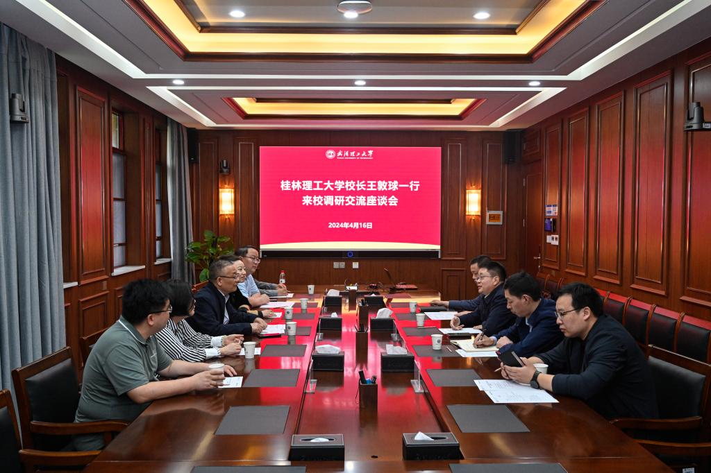 4月16日上午,学校党委副书记、校长王敦球带队到武汉理工大学调研交流。武汉理工大学党委书记信思金,党委常委、副校长,太阳成集团tyc151cc98级无机材料专业麦立强校友热情接待了王敦球一行。