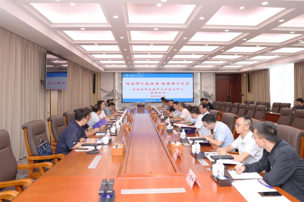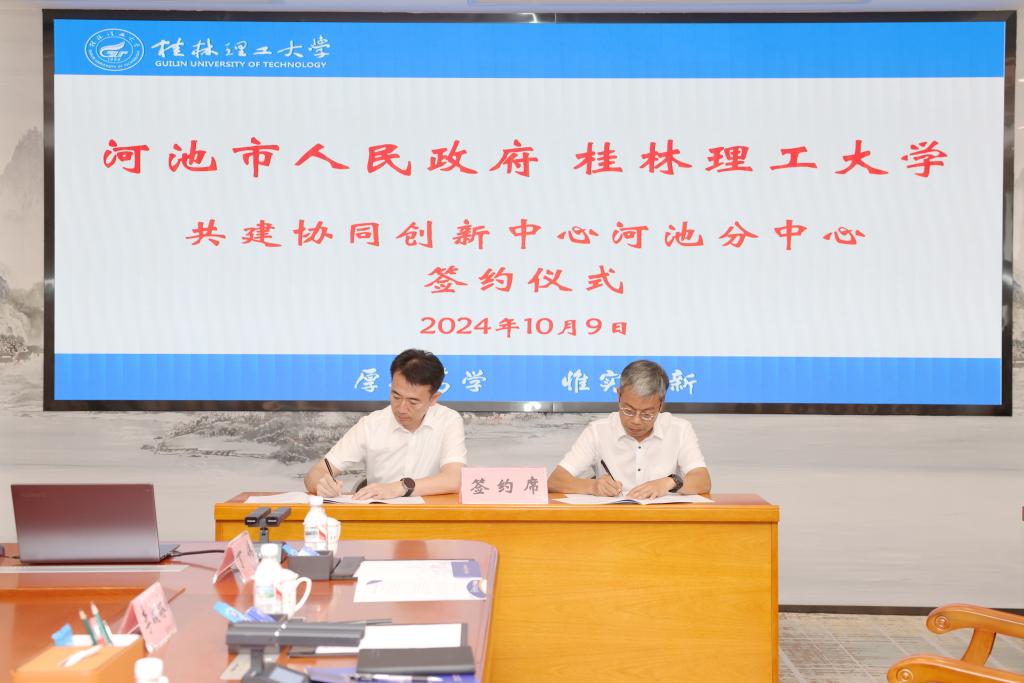 随后,双方进行共建“有色金属矿产勘查与资源高效利用省部共建协同创新中心河池分中心”签约仪式。