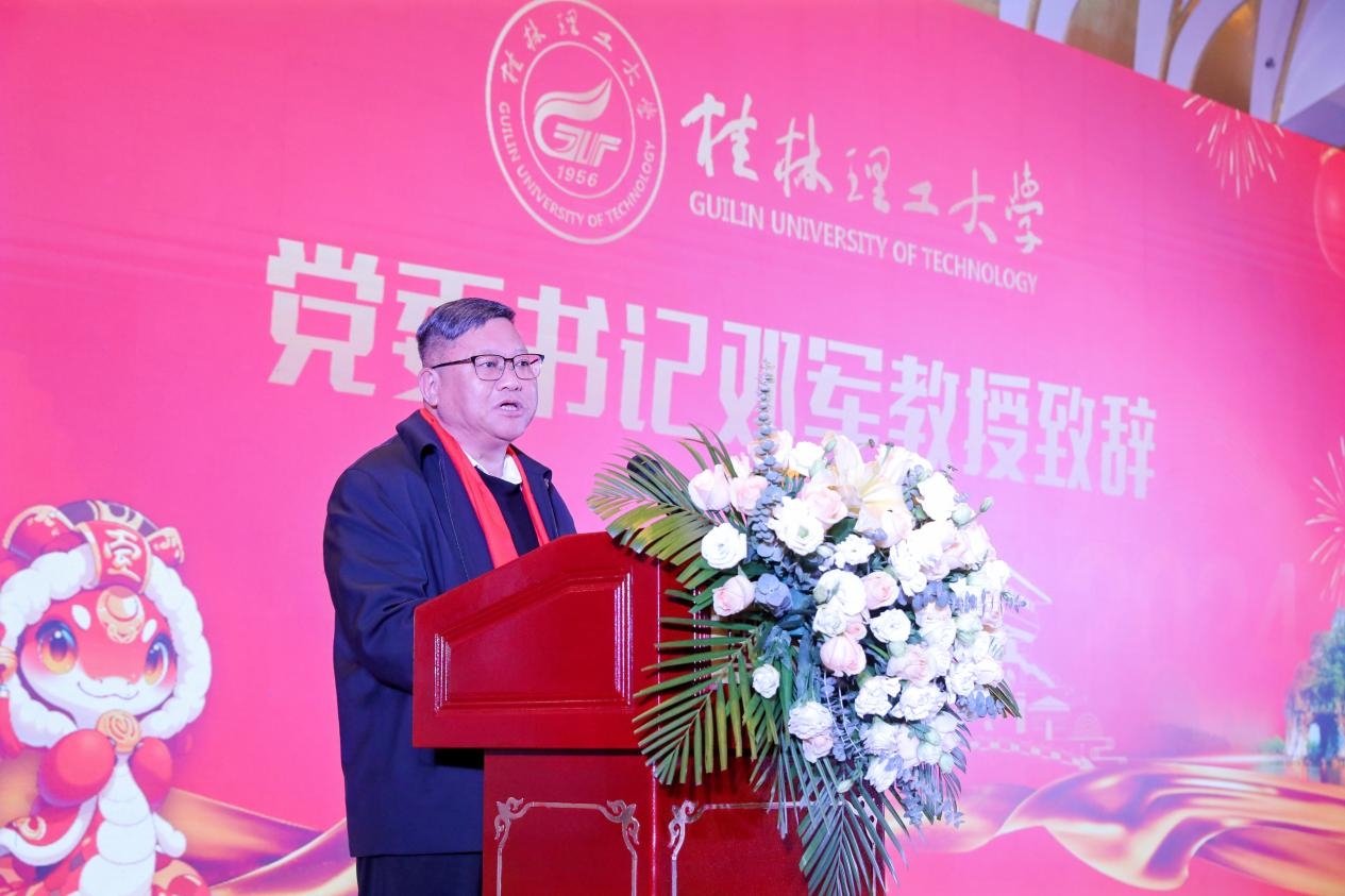 元日将临的桂林满溢朝气,校友的情谊源远流长。12月29日,桂林校友2024年度盛宴在大公馆举行,学校党委书记邓军,党委副书记、校长王敦球,党委常委、副校长王磊,党委常委、副校长罗盛锋、桂林航天工业学院党委常委、副校长张烈平,桂林旅游学院原校长程道品,学校校务委员会副主任、原副校长陈学军,学校校务委员会副主任、原副校长梁福沛出席年会,学校党办校办法务办、宣传部、校庆办主要负责人与地方单位代表、校友代表200多人齐聚一堂,共享欢聚之乐,共话情谊与发展。