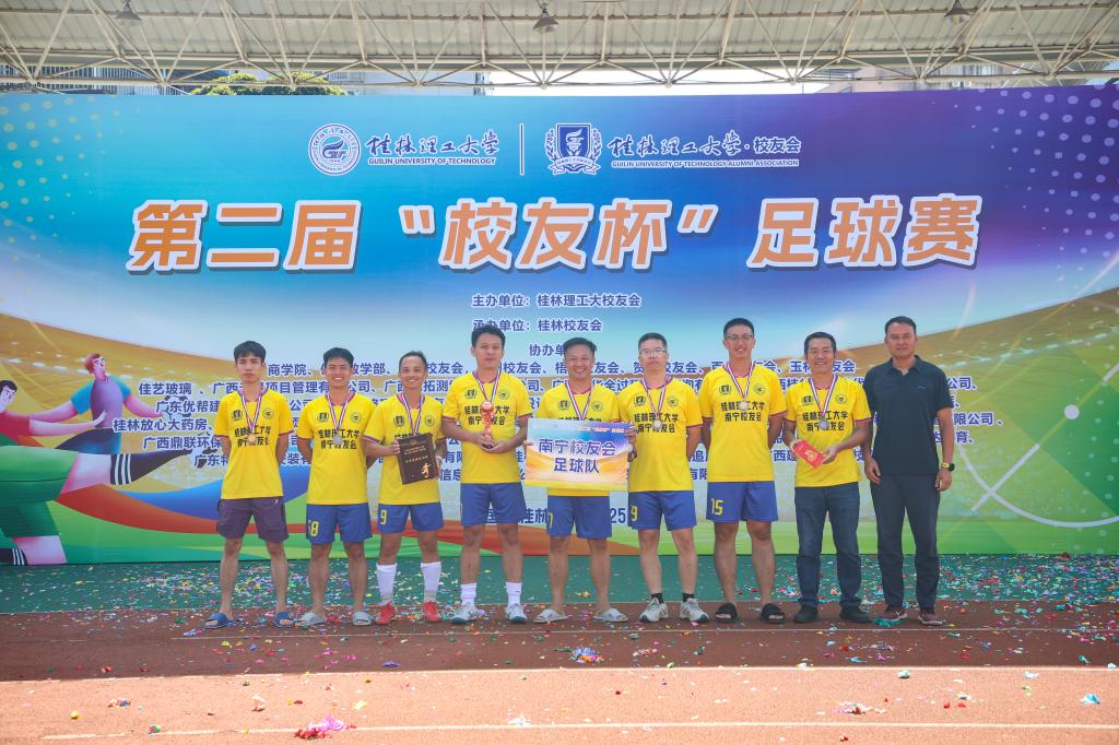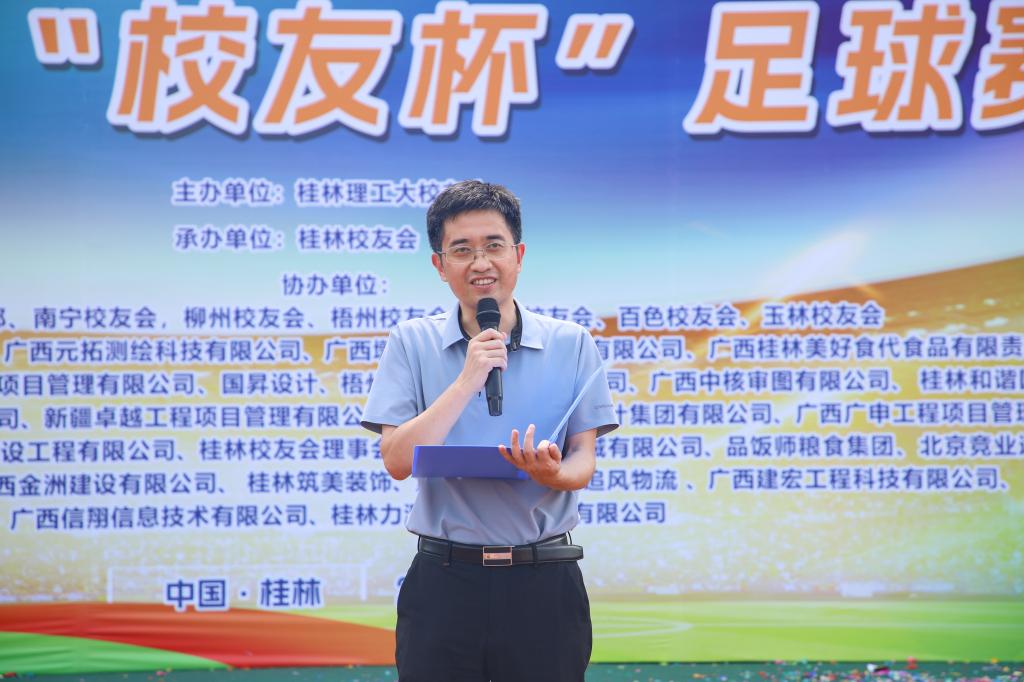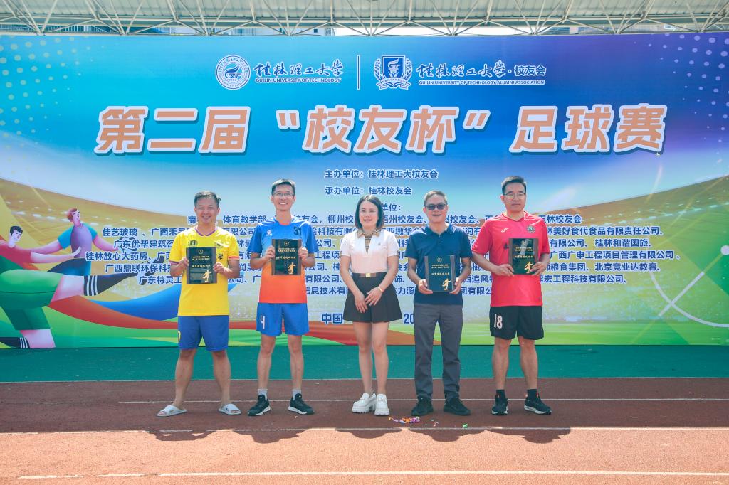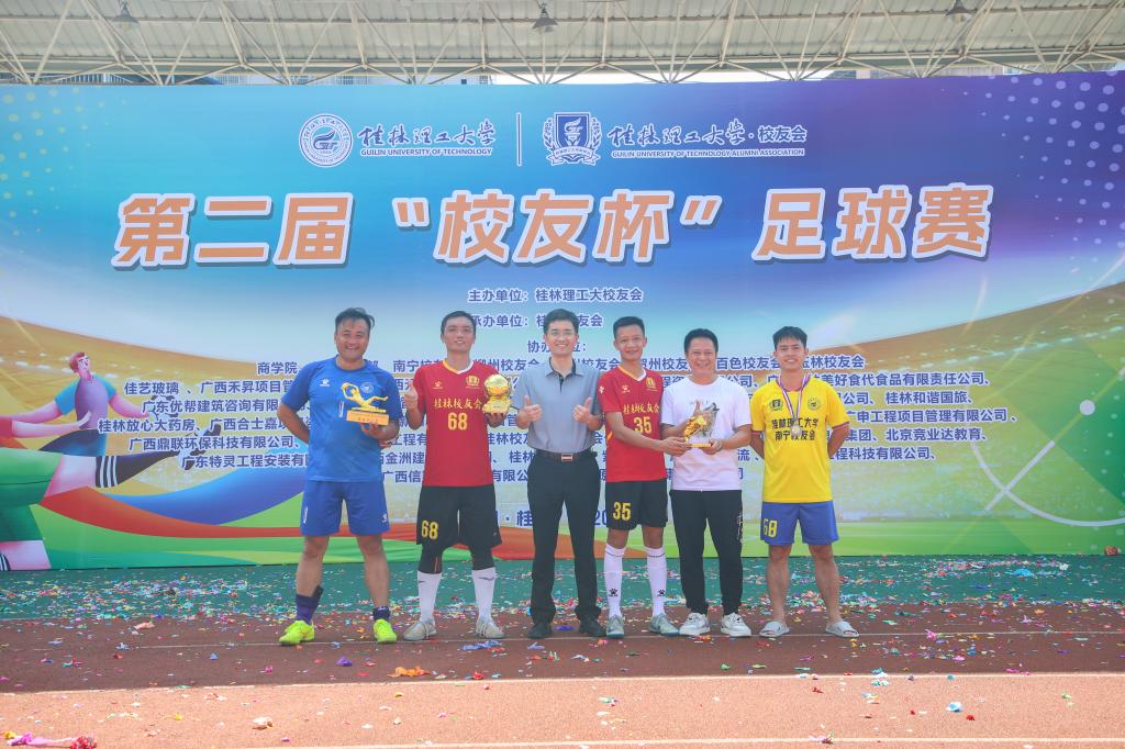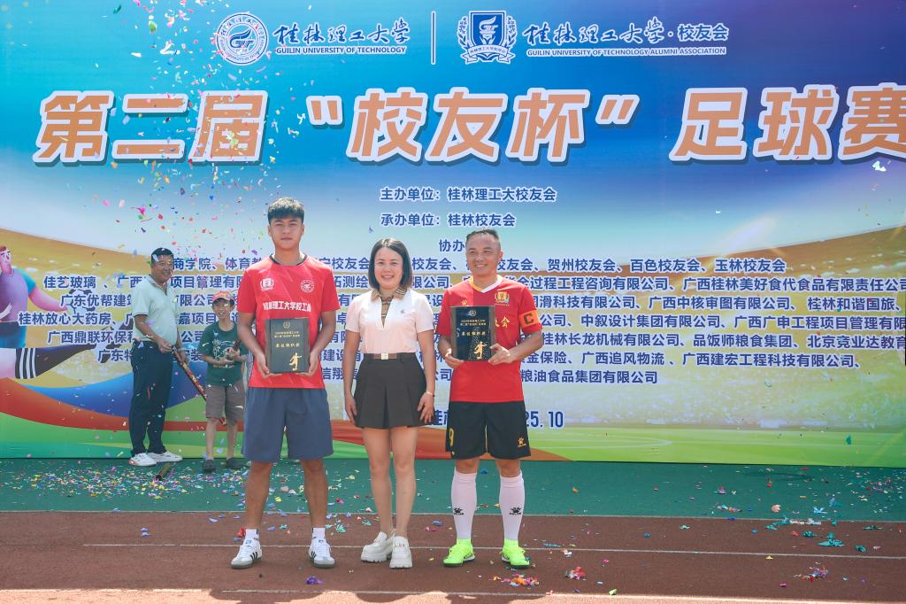 颁奖仪式上,学校党委常委、副校长王磊代表学校向所有获奖者表示祝贺,并向默默奉献的裁判员、志愿者及工作人员致以诚挚感谢。他指出,三天来,校友们用脚步丈量青春,用汗水诠释激情,那种永不言败、敢于争先的劲头,正是“桂工精神”最生动的注脚。“未来,学校将持续放大‘校友杯’品牌效应,让这片绿茵成为凝聚校友情谊、传承桂工精神的重要桥梁。”