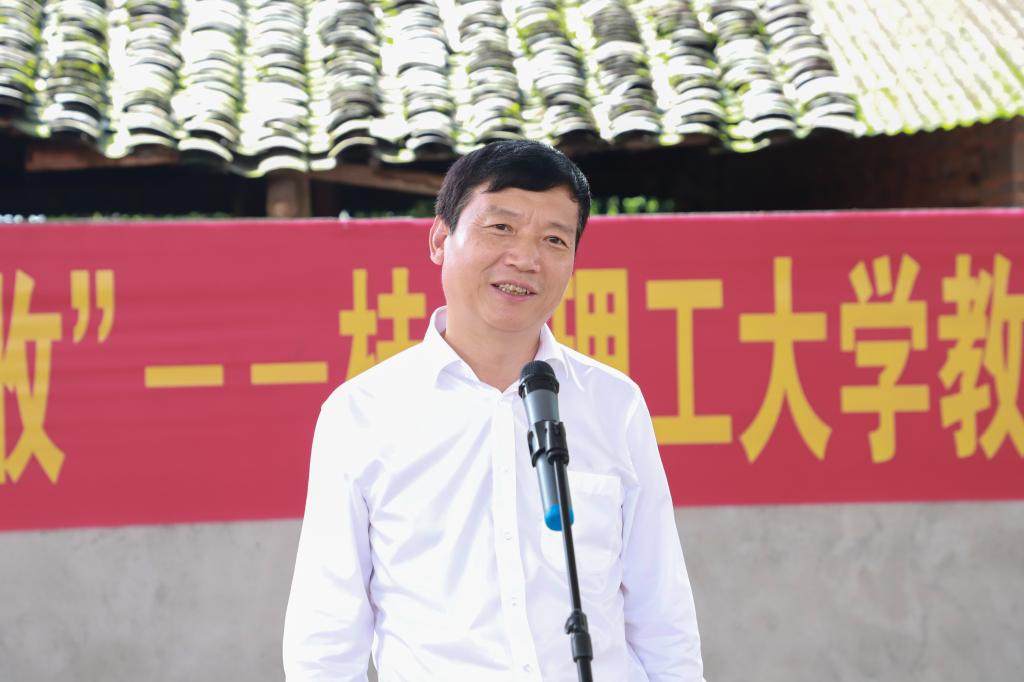 副校长、学校教育发展基金会名誉理事长王敦球向灌阳县永富村村民代表捐赠