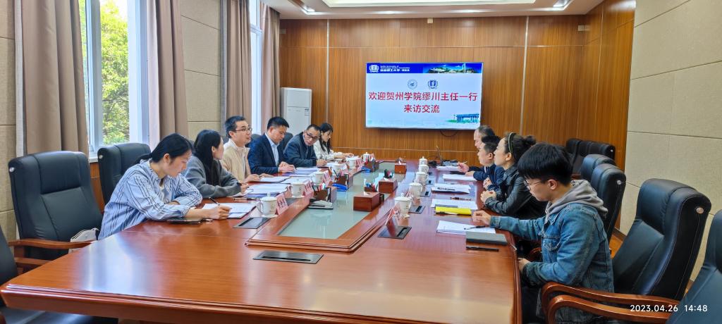 4月26日下午,贺州学院校友工作办公室主任缪川一行6人到太阳成集团tyc151cc就教育发展基金会募资、投资管理进行交流学习。学校财务处处长、教育发展基金会理事长周克海;校友办主任、党办校办副主任、教育发展基金会副理事长龙媛等相关人员在屏风校区,热情接待了贺州学院一行。
