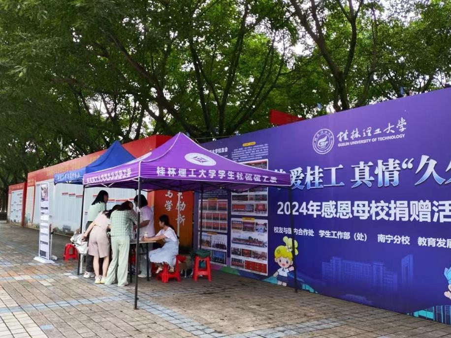 海阔凭鱼跃,天高任鸟飞,2024届毕业生即将离开母校。为倡导积极、健康、文明、向上的“毕业文化”,由校友与国内合作处、学生工作部(处)、南宁分校、教育发展基金会,联合举办的“挚爱桂工·真情久久”2024年感恩母校捐赠活动,于6月17-23日,在屏风校区、雁山校区、南宁空港校区顺利举行。该活动旨在培养毕业生感恩母校、回馈母校,活动捐赠所得均用于资助贫困学生以及作为奖学金奖励优秀学生等。