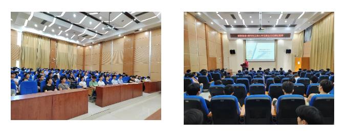 不能创新创业优秀校友代表福建瑞思石业有限公司董事长程龙、南宁富桂精密工业有限公司项目经理谢俊宏、合肥泰禾智能科技集团股份有限公司销售经理赵彦鑫、广西农业科学院科技特派员邢钇浩等四位校友受邀在雁山校区萃华楼报告厅,为学院学弟学妹献上校友讲坛-《新时代工科大学生就业创业路径选择》。四位校友详细向学弟学妹分享他们在校学习、职场求职、自主创业的宝贵经验,结合实际自身的真实案例,为大家分析乡村振兴背景下智能制造行业发展前景、就业创业等对工科学生综合素质的需求、要求等,帮助我院学子树立正确人生观、价值观及如何理性择业、就业与创业方面的示范和导向作用,帮助同学们明确职业规划、了解职业选择,激励广大学弟学妹努力学习,励志成才。