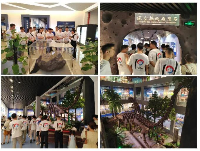 不能在学院留校工作校友黎云鹏的引导下,校友们带着来校家属一起来到雁山校区地质博物馆参观活动。在讲解员的介绍下,校友们从元素、矿物、岩石的关系,结合深部地质,中国科考等方面真正“认识了石头,认识了地球”。校友们参观了史前动物的巨大复原塑像,领略了多彩的地质科学文化和浓郁的自然科学景观,时不时好奇提问,现场气氛十分活跃,给校友们上了一堂生动的自然、科普、文化等多层面的教育课;大家依次参观了矿物岩石厅、宝玉石厅以及多功能放映厅等,一块块矿石、一颗颗水晶和美轮美奂的钻石、宝石展品把校友们的视线紧紧吸引。大家感慨自然的奥妙也为我们学校地质事业起家取得的辉煌成就作为一名桂工人而感到无比骄傲和自豪!