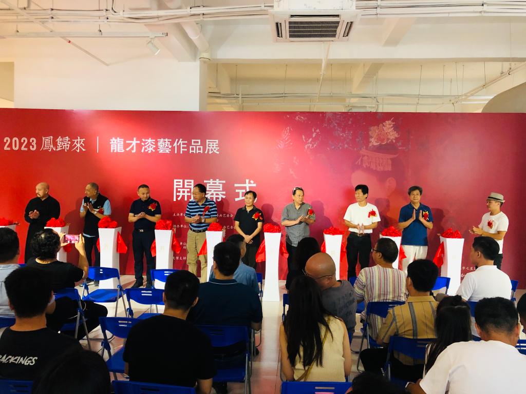 考察期间,李本建一行受邀出席龙才的个人漆艺作品展开幕式。他在致辞中对校友们的热情接待表示感谢,并从历史沿革、学科建设、人才培养、科研合作、办学特色等方面介绍了学院的基本情况。他表示,学院希望与校友工作室和其他企事业单位加强产学研合作,以企事业单位需求为导向,进一步提高艺术人才培养质量,从而更好地服务地方文化创意产业,促进校企双方高质量发展。