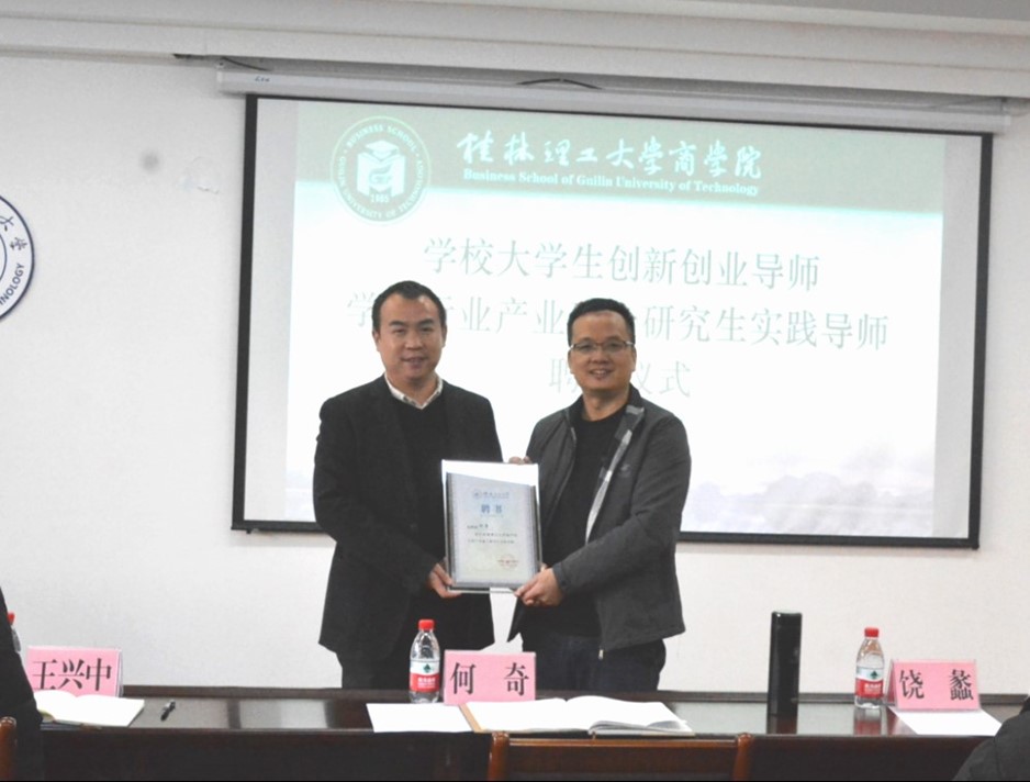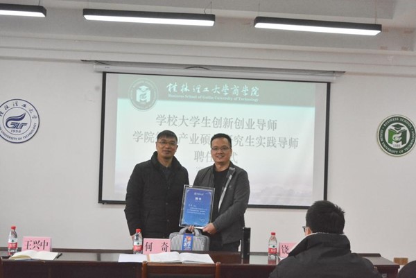 报告会上,聘任何奇校友为学校大学生创新创业导师和太阳成集团tyc151cc行业产业研究生实践导师。