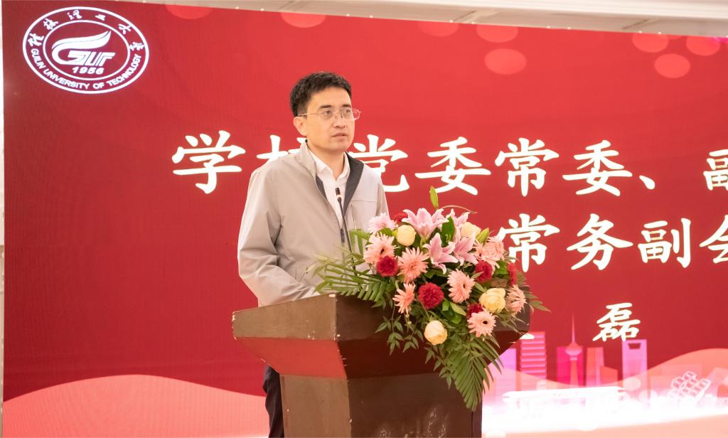 王磊对大会的成功召开和新当选的理事会成员表示祝贺,对上一届理事会成员的辛勤付出表示衷心的感谢。他指出,校友是母校最靓丽的名片,也是母校前进最可信与依靠的重要力量。当前学校正全力推进特色鲜明、国内知名高水平理工大学建设,更需要来自广大校友等各方力量的鼎力支持,为学校贡献更为强劲有力的桂工校友力量。他希望广大校友积极宣传母校、推介母校,关注和融入母校高水平理工大学建设中;希望桂林校友联络处能够紧紧系牢校友与校友之间、校友与母校之间的情感纽带,加强信息交流、资源共享和感情联络,团结带领桂林校友携手共赢,同行致远。
