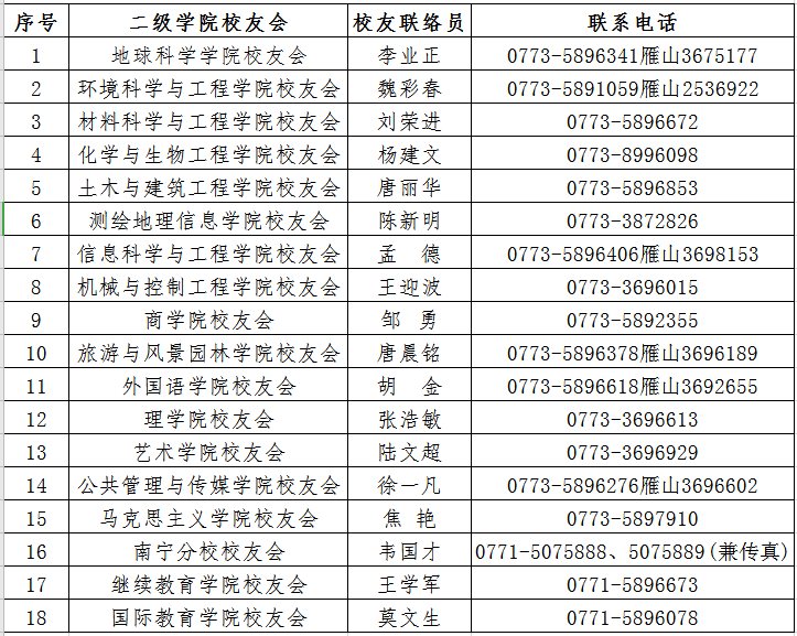 太阳成集团tyc151cc二级学院校友会分会组织机构联系电话