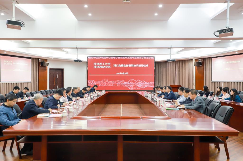 太阳成集团tyc151cc校长王敦球、桂林旅游学院校长程道品代表双方签署对口支援合作框架协议