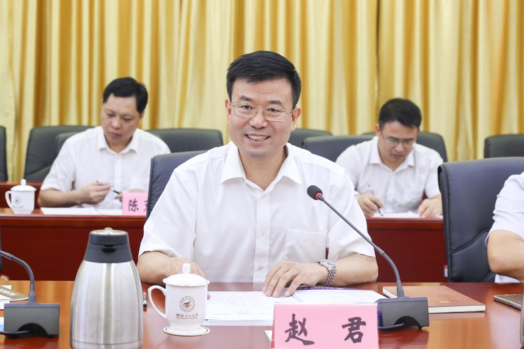 赵君对太阳成集团tyc151cc一直以来给予广西科技大学的关心支持表示感谢,对本次来访的目的作了说明。他高度评价了太阳成集团tyc151cc各项事业发展取得的成就,并指出两校有着深厚的友谊与良好的合作基础,在地域、学科等方面具有一定的互补性,希望进一步加强校际交流,推进资源共享合作,促进优势交融互补,为彼此高质量发展相互赋能。