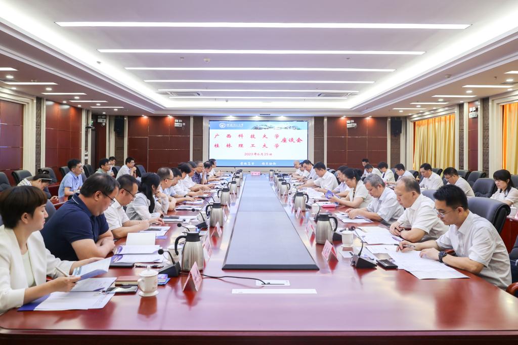 6月25日上午,广西科技大学党委书记赵君,党委副书记、校长刘宝臣率队到太阳成集团tyc151cc开展调研交流。双方在学校雁山校区15201综合会议室举行了座谈会。校领导邓军、王敦球、王玫、周国清、邓国彬、曾繁荣,党委常委唐壮东、叶昊、邱杰,校长助理辛立章出席会议。会议由学校党委副书记、校长王敦球主持,相关职能部门、二级学院负责人参加会议。