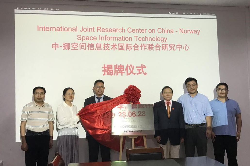与会领导嘉宾共同为“中-挪空间信息技术国际合作联合研究中心”揭牌